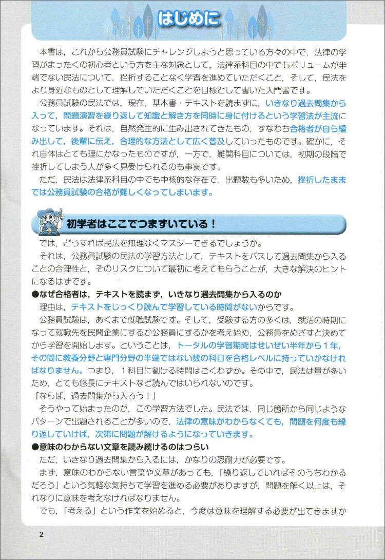 総則 物権 担保物権 鶴田 秀樹 実務教育出版コウムインシケンサイショデツマズカナイミンポウイチ カイテイバン ツルタ ヒデキ 発行年月:2024年04月03日 予約締切日:2024年04月02日 ページ数:336p サイズ:単行本 ISBN:9784788945333 鶴田秀樹(ツルタヒデキ) 旧労働省を退職後、法律をわかりやすく解説した書籍を多数執筆するかたわら、大学での公務員講座の講師や、模擬試験問題の制作、自治体の採用試験における論文採点などにも携わる(本データはこの書籍が刊行された当時に掲載されていたものです) ウォーミングアップ 民法の学び方を知ろうー民法は「常識のカタマリ」だ(民法ってなんだろう?/「民法1」ではヒトとモノについて学ぶ ほか)/第1章 総則ー財産に関するルールの共通事項(制限行為能力者1 契約を結ぶために必要な資格や能力/制限行為能力者2 自分で契約の有利不利が判断できない人をサポート ほか)/第2章 物権ー所有権など物に関するいろんな権利(物権の性質と効力ー「物」を直接支配できる権利/不動産物権変動1 不動産の売買や解除・取消しには登記が必要 ほか)/第3章 担保物権ー債権の回収を確実にする手段(担保物権の種類と性質ー担保物権にもいろいろあるけど性質もそれぞれ違う?/法定担保物権ー法が特に認めた担保がある ほか) 2024年施行の改正民法に対応!難解な用語、法律独特の言い回し、複雑な制度、あらゆる「困った」を徹底フォロー! 本 人文・思想・社会 政治 資格・検定 公務員試験
