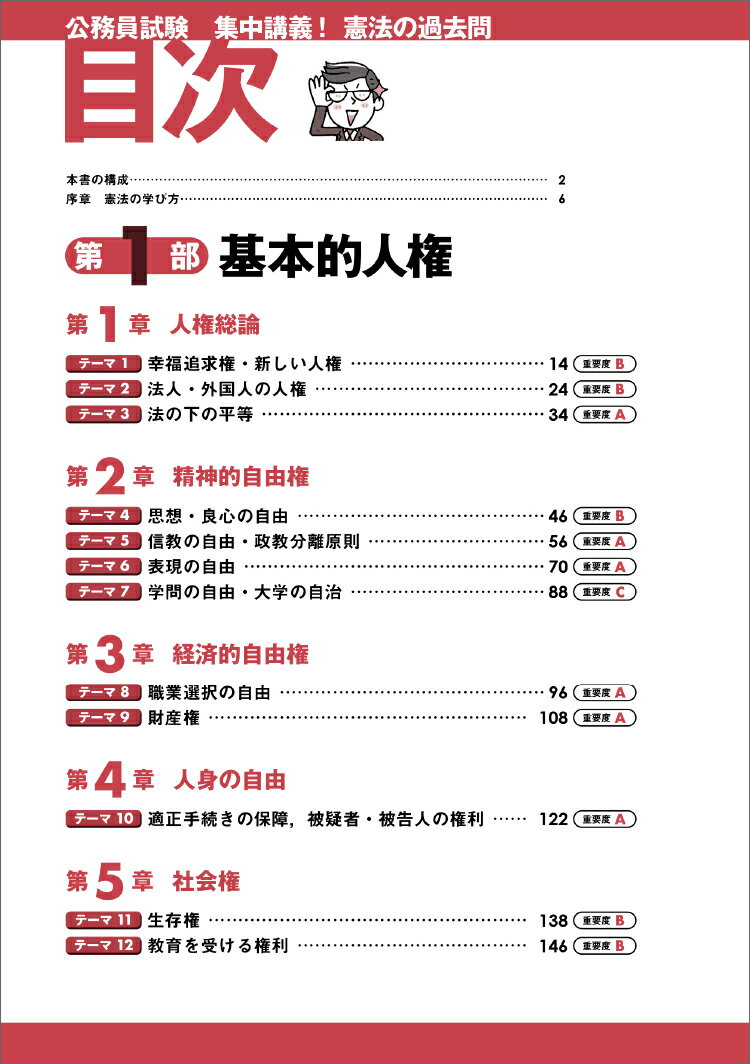 「集中講義」 資格試験研究会 鶴田 秀樹 実務教育出版コウムインシケンシュウチュウコウギ シカクシケンケンキュウカイ ツルタ ヒデキ 発行年月:2022年04月13日 予約締切日:2022年04月12日 ページ数:335p サイズ:単行本 ISBN:9784788941908 鶴田秀樹(ツルタヒデキ) 旧労働省を退職後、法律をわかりやすく解説した書籍を多数執筆するかたわら、大学での公務員講座の講師や、模擬試験問題の制作、自治体の採用試験における論文採点などにも携わる(本データはこの書籍が刊行された当時に掲載されていたものです) 第1部 基本的人権(人権総論/精神的自由権/経済的自由権/人身の自由/社会権 ほか)/第2部 統治機構(国会/内閣/裁判所/財政・地方自治・憲法改正) 講師力でスカッと解決!苦手意識を克服できる。短期間で正誤のポイントを押さえられる。問題を解くスピードが上がる。 本 人文・思想・社会 政治 資格・検定 公務員試験