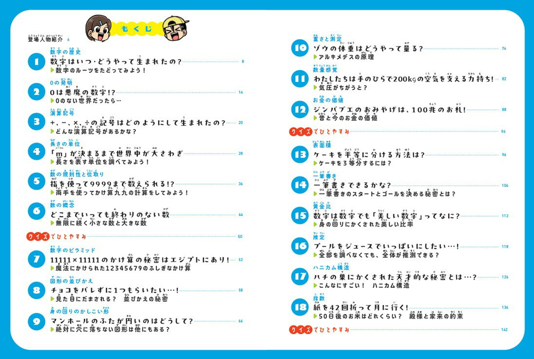 Gakken とし山じゅん Gakkenマンガデナルホド サンスウトリビアーン ガッケン トシヤマジュン 発行年月:2026年03月02日 予約締切日:2026年03月01日 ページ数:144p サイズ:全集・双書 ISBN:9784053062437 とし山じゅん(トシヤマジュン) 愛知県に生まれる。2019年に第84回小学館新人コミック大賞・児童部門で佳作を受賞し、2021年『それゆけ!アシュラくん』(別冊コロコロコミック)でデビュー。明快な物語展開と元気あふれる筆致が魅力で、子どもたちに親しみやすい王道ヒーロー作品を数多く手がける(本データはこの書籍が刊行された当時に掲載されていたものです) 数字の歴史 数字はいつ・どうやって生まれたの? 数字のルーツをたどってみよう!/0の発明 0は悪魔の数字!? 0のない世界だったら…/演算記号 +、ー、×、÷の記号はどのようにして生まれたの? どんな演算記号があるかな?/長さの単位 「m」が決まるまで世界中が大さわぎ 長さを表す単位を調べてみよう!/数の規則性と位取り 指を使って9999まで数えられる!? 両手を使ってかけ算九九の計算をしてみよう!/数の概念 どこまでいっても終わりのない数 無限に続く小さな数と大きな数/数字のピラミッド 11111×11111のかけ算の秘密はエジプトにあり! 魔法にかけられた12345679のふしぎなかけ算/図形の並びかえ チョコをバレずに1つもらいたい…! 見た目にだまされる?並びかえの秘密/身の回りのかしこい形 マンホールのふたが円いのはどうして? 絶対に穴に落ちない図形は他にもある?/重さと測定 ゾウの体重はどうやって量る? アルキメデスの原理/数量感覚 わたしたちは手のひらで200kgの空気を支える力持ち! 気圧がちがうと?/お金の価値 ジンバブエのおみやげは、100兆のお札! 昔と今のお金の価値/表面積 ケーキを平等に分ける方法は? ケーキを3等分するには?/一筆書き 一筆書きできるかな? 一筆書きのスタートとゴールを決める秘密とは?/黄金比 数字は数字でも「美しい数字」ってなに? 身の回りにかくされた美しい比率/推定 プールをジュースでいっぱいにしたい…! 全部を調べなくても、全体が推測できる?/ハニカム構造 ハチの巣にかくされた天才的な秘密とは…? こんなにすごい!ハニカム構造/指数 紙を42回折って月に行く! 50日後のお米はどれくらい?殿様と家来の約束 身近にある算数のふしぎやひみつをマンガで楽しく、図解でしっかり理解!読むうちに、算数がどんどん好きになる! 本 科学・技術 数学