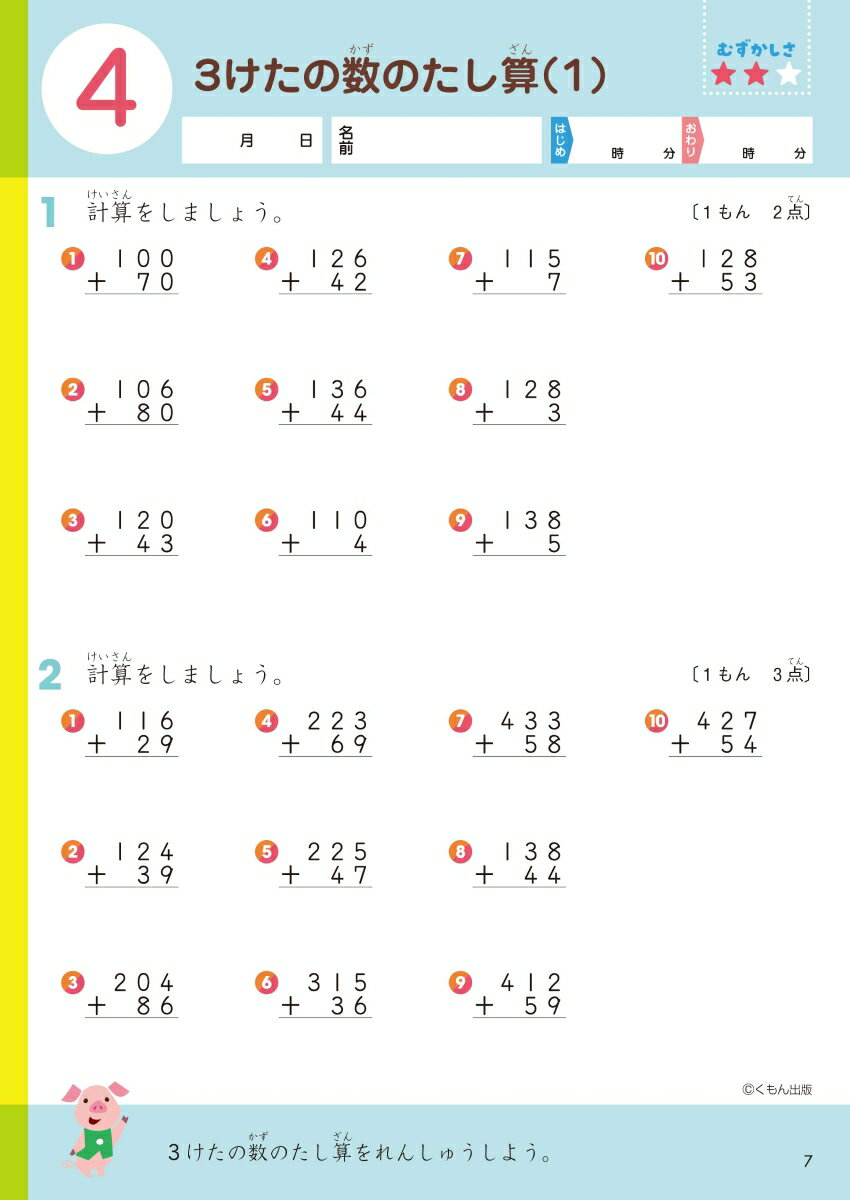3年生たし算・ひき算 (くもんの小学ドリル算数)