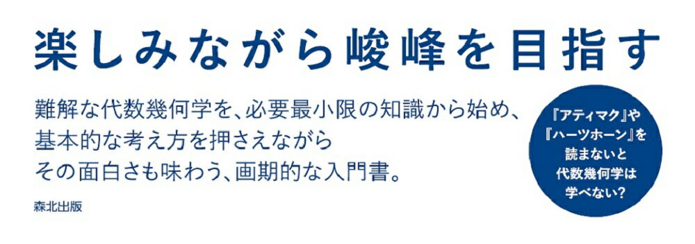 永井 保成 森北出版ダイスウキカガクニュウモン ナガイ ヤスナリ 発行年月:2021年01月22日 予約締切日:2021年01月21日 ページ数:320p サイズ:単行本 ISBN:9784627078413 永井保成(ナガイヤスナリ) 2005年東京大学大学院数理科学研究科博士課程修了。博士(数理科学)。日本学術振興会特別研究員、韓国高等科学院研究員、マインツ大学数学研究所研究員。東京大学大学院数理科学研究科特任助教を経て、2011年早稲田大学理工学術院専任講師。その後、同准教授を経て、2017年より同教授(本データはこの書籍が刊行された当時に掲載されていたものです) 平面曲線と特異点/形式的ベキ級数環/ブローアップ/Weierstrass多項式/平面曲線の特異点解消/アフィン代数多様体と座標環/加群/有限群の表現/不変式環/次数加群とHilbertーPoincar´e級数/テンソル積とHom加群/完備化/正則局所環/指標理論/Molienの公式/SL(2,C)の有限部分群/KleinーDu Val特異点/ホモロジー/加群の分解/二重複体/Hilbertのsyzygy定理/付録A 局所化・整拡大/付録B Noether局所環の次元の理論/付録C Noether正規化補題とHilbertの零点定理 楽しみながら峻峰を目指す。難解な代数幾何学を、必要最小限の知識から始め、基本的な考え方を押さえながらその面白さも味わう、画期的な入門書。 本 科学・技術 数学