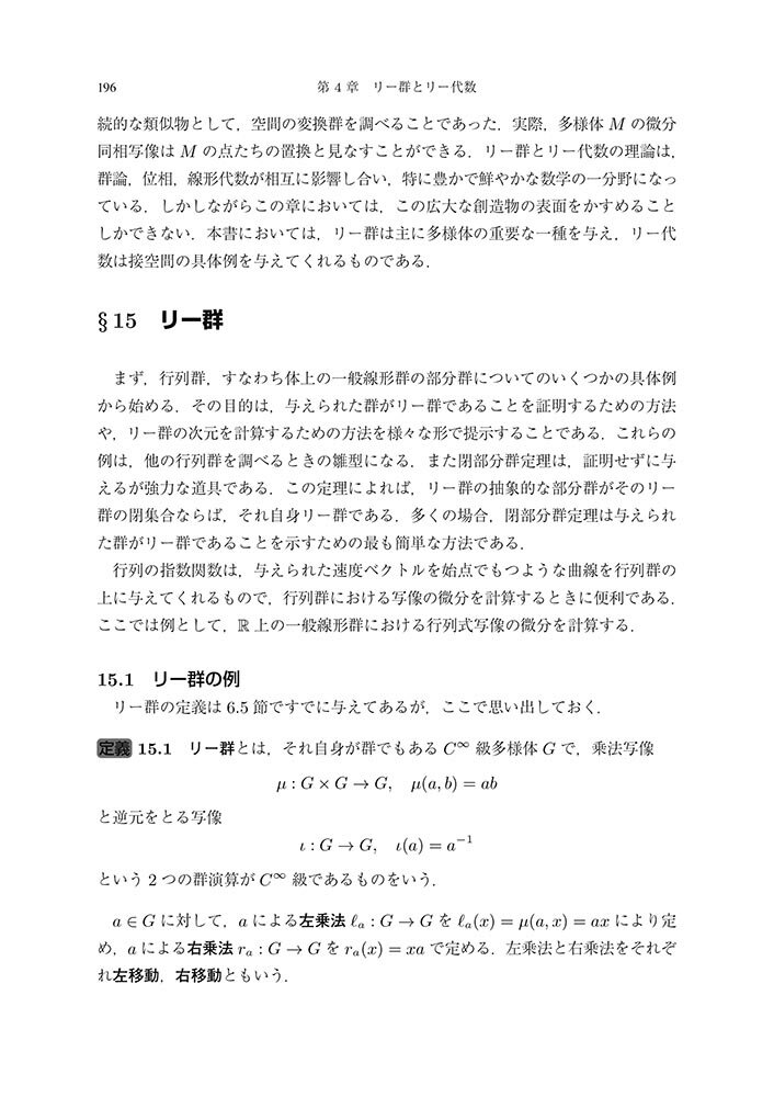 Loring W. Tu 枡田 幹也 裳華房トゥータヨウタイ ローリングダブリュートゥー マスダミキヤ 発行年月:2019年11月29日 予約締切日:2019年11月28日 ページ数:506p サイズ:単行本 ISBN:9784785315863 Tu,Loring W. 台湾・台北市出身。台湾、カナダ、アメリカで育つ。学部生としてマギル大学とプリンストン大学に在籍し、1979年にPhillip A.Griffithsの指導のもとでハーバード大学からPh.D.を取得。これまで、ミシガン大学アナーバー校助教授、プリンストン高等研究所研究員、アンリ・ポアンカレ研究所研究員、ジョンズ・ホプキンス大学助教授等を歴任。現在、タフツ大学数学科教授。学位は代数幾何で取得したが、ホッジ理論や退化跡、ベクトル束のモジュライ空間、同変コホモロジーといった、代数幾何とトポロジー、微分幾可が交錯する分野で研究を行っている 枡田幹也(マスダミキヤ) 1954年兵庫県生まれ。1980年東京大学大学院理学系研究科修士課程修了。理学博士。現在、大阪市立大学大学院理学研究科教授。専門はトポロジー、変換群の幾何学 阿部拓(アベヒラク) 1980年茨城県生まれ。2013年首都大学東京理工学研究科数理情報科学専攻博士後期課程修了。博士(理学)。現在、大阪府立大学教育拠点形成教員。専門は群作用にまつわる幾何学とトポロジー 堀口達也(ホリグチタツヤ) 1988年滋賀県生まれ。2016年大阪市立大学大学院理学研究科博士課程修了。博士(理学)。現在、日本学術振興会特別研究員PD(大阪大学)。専門はトポロジー(本データはこの書籍が刊行された当時に掲載されていたものです) 第1章 ユークリッド空間/第2章 多様体/第3章 接空間/第4章 リー群とリー代数/第5章 微分形式/第6章 積分/第7章 ド・ラーム理論/付録 世界的名著“ボット・トゥー”の著者による多様体論の現代的入門書。 本 科学・技術 数学