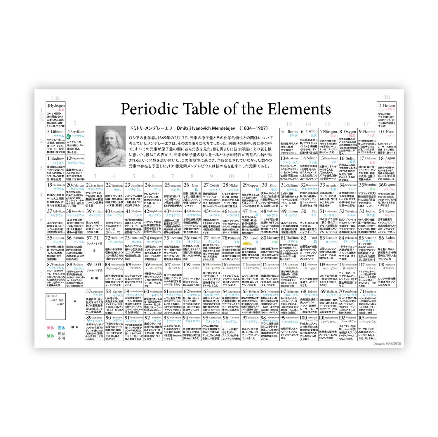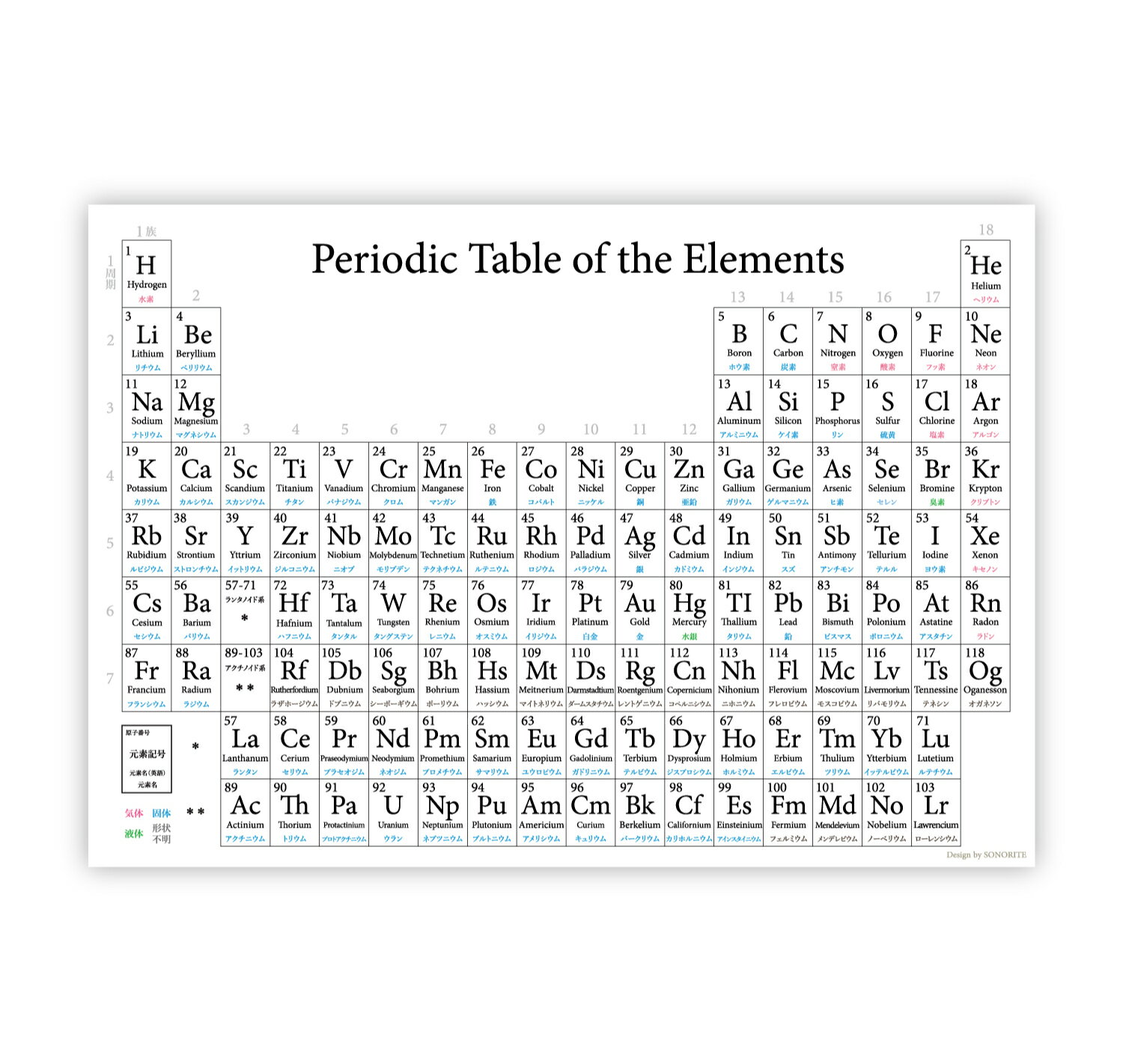 【内容】 A4サイズ 1枚(表と裏に各デザイン) 【発送について】 ・ネコポス便にて発送いたします。 算数 面積 体積 角度 円 速さ 割合 平均 利益 小学生 中学生 高校生 中学受験 ポスター 知育 教育 モンテッソーリ ギフト プレゼント 贈り物 おしゃれ クリスマス 小学校 受験ポスター 【発送について】 ・素材によりポスターとの同梱は不可。両方ご購入いただいた場合は、別々に発送いたします。 ・ネコポス便にて発送いたします。元素記号の羅列が美しい元素周期表の下敷きが新登場! 持ち運びしやすいA4サイズなので、生活の中の元素記号が自然と覚えられそうですね♪ 裏面には、各元素の詳細の説明や 実際に使われている用途の一覧が記載されています。 この元素周期表は、文部科学省の発行するポスターをもとに製作しております。 (113番の新しく登録されたニホニウムに対応) ●気体・個体・液体・形状不明の4つの形状を色分けで表示 科学がお好きなお子様から、小中学高校生に、また科学関係のお仕事をされている方への インテリアとしての贈り物にもいかがでしょうか。 →元素周期表のA2サイズのポスターはこちら 【内容】 下敷き1枚(表と裏に各デザイン) 【材質】 厚紙にPPパウチされた強度のある仕様で、安心角丸タイプ。 (完全防水ではございません)br> 【サイズ】A4×1枚 【発送について】 ・ネコポス便にて発送いたします。 ・ポスター類と一緒に購入された場合は、同梱発送いたします。 【ご注意】 ※表裏に各デザインがされており、下敷き1枚分となっております。 【下敷きラインナップ】 【下敷き】日本&世界地図 【下敷き】四季表 【下敷き】ローマ字&タイピング表 【下敷き】指文字表 手話 【下敷き】漢字 部首一覧 【下敷き】掛け算 九九表 【下敷き】算数の公式 【ご注意】 ※表裏に各デザインがされており、下敷き1枚分となっております。 【サイズ】A4 元素周期 化学 体積 小学生 中学生 高校生 中学受験 ポスター 知育 教育 モンテッソーリ ギフト プレゼント 贈り物 おしゃれ クリスマス 小学校 受験ポスター