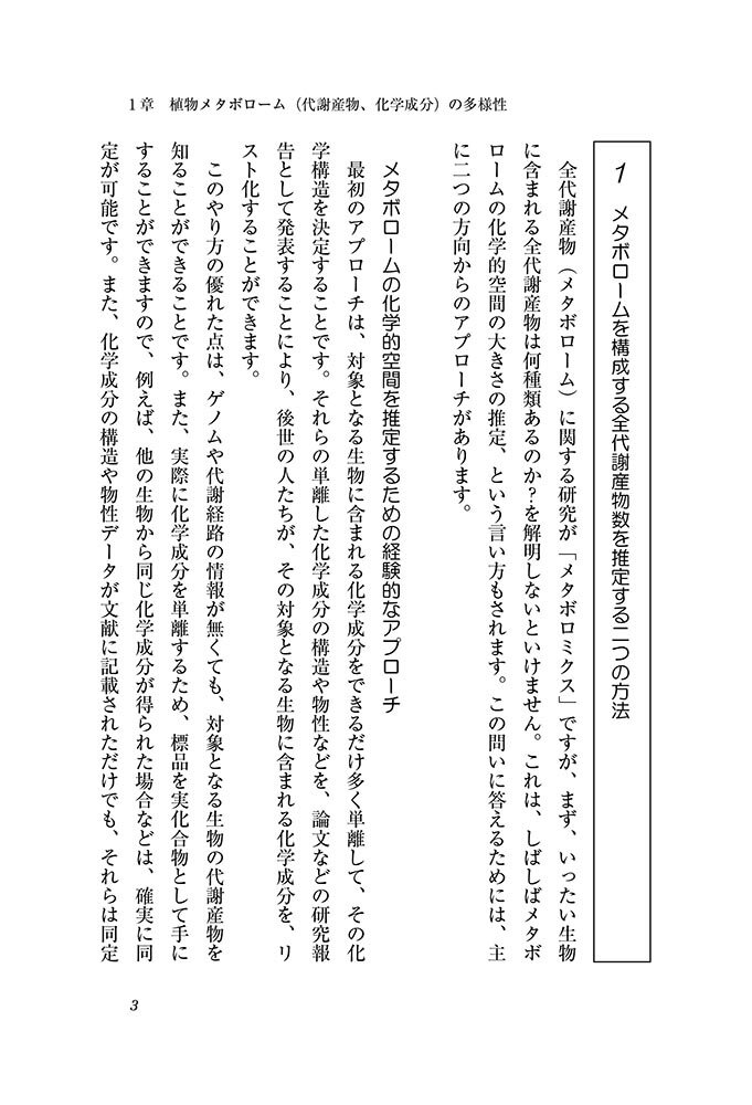 ゲノムから解読する植物化学成分 シリーズ・生命の神秘と不思議 斉藤 和季 裳華房ショクブツメタボロミクス サイトウカズキ 発行年月:2019年12月24日 予約締切日:2019年12月23日 ページ数:170p サイズ:単行本 ISBN:9784785351298 斉藤和季(サイトウカズキ) 1954年長野県生まれ。1977年東京大学薬学部製薬化学科卒業。同大学院薬学系研究科に進学。1982年薬学博士号取得。現在、千葉大学大学院薬学研究院教授、同大学植物分子科学研究センターセンター長、理化学研究所環境資源科学研究センター副センター長。紫綬褒章、文部科学大臣表彰科学技術賞、日本薬学会賞、日本生薬学会賞、日本植物生理学会賞、日本植物細胞分子生物学会学術賞、国際メタボロミクス学会終身名誉フェロー、Highly Cited Researcher(クラリベイト・アナリティクス社)などを受賞(本データはこの書籍が刊行された当時に掲載されていたものです) 1章 植物メタボローム(代謝産物、化学成分)の多様性/2章 なぜ植物メタボロームは多様なのか?そこに秘められた植物の生存戦略/3章 ゲノム解読がもたらした新しい地平/4章 植物メタボロームを解読する/5章 統合オミクスと遺伝子機能の同定:モデル植物シロイヌナズナを用いて/6章 作物や薬用植物でのメタボロミクス/7章 これからの課題と挑戦 ポリフェノール、カテキン、フラボノイド、カフェイン、モルヒネ、ニコチン、…。植物はなぜ多くの代謝産物(化学成分)を作るのか?これらの代謝産物はどのような仕組みで作られるのか?植物メタボロミクス研究の黎明期からこの分野を開拓してきた著者が、植物の進化の歴史に刻まれた、代謝産物を作る能力の秘密に迫る。 本 科学・技術 生物学 科学・技術 植物学