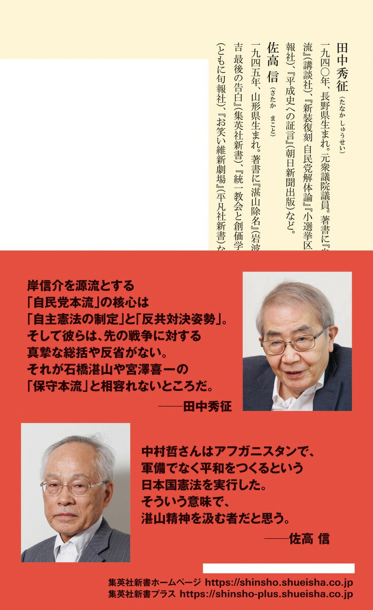 集英社新書 田中 秀征 佐高 信 集英社政治思想 佐高信 自民党 カルト 政治家 岸信介 改革 裏金 世襲 政治改革 田中秀征 清和会 経済失政 癒着 日本政治 国内外注目 政治史 政治評論 イシバシタンザンヲカタル/イマヨミガエルホシュホンリュウノシンズイ タナカ シュウセイ サタカ マコト 発行年月:2024年10月17日 予約締切日:2024年10月16日 ページ数:240p サイズ:新書 ISBN:9784087213379 田中秀征(タナカシュウセイ) 1940年、長野県生まれ。元衆議院議員 佐高信(サタカマコト) 1945年、山形県生まれ(本データはこの書籍が刊行された当時に掲載されていたものです) 第1章 小日本主義とは何か?ー湛山の本質/第2章 「表安保、裏安保」とは何か?ー湛山の知恵/第3章 保守本流をどう再生させるか?ー湛山の立場の復活に向けて/第4章 その衣鉢は誰が継ぐ?ー湛山の後継者/第五章 湛山を生きるとは?ー田中秀征の湛山愛/第6章 未来の湛山どう育てる?ー新たなる湛山を求めて 世襲、裏金、カルトとの癒着、経済失政、そして、アメリカに何もものが言えない自民党政治。この自民党の源流は岸信介・清和会にあると言える。しかし戦後、岸やGHQとも一線を画す、保守本流の源流となった政治家がいた。石橋湛山。その湛山に今、国内外から注目が集まっている。そこで湛山の孫弟子である元衆議院議員の田中秀征と、湛山に関する著作もある評論家の佐高信が、彼の思想や真髄を語り、日本政治に必要な保守本流の考え方、政治家像、日本はこの先世界でどうふるまって行くべきかという改革の方向性を語り尽くす。 本 人文・思想・社会 政治 新書 その他