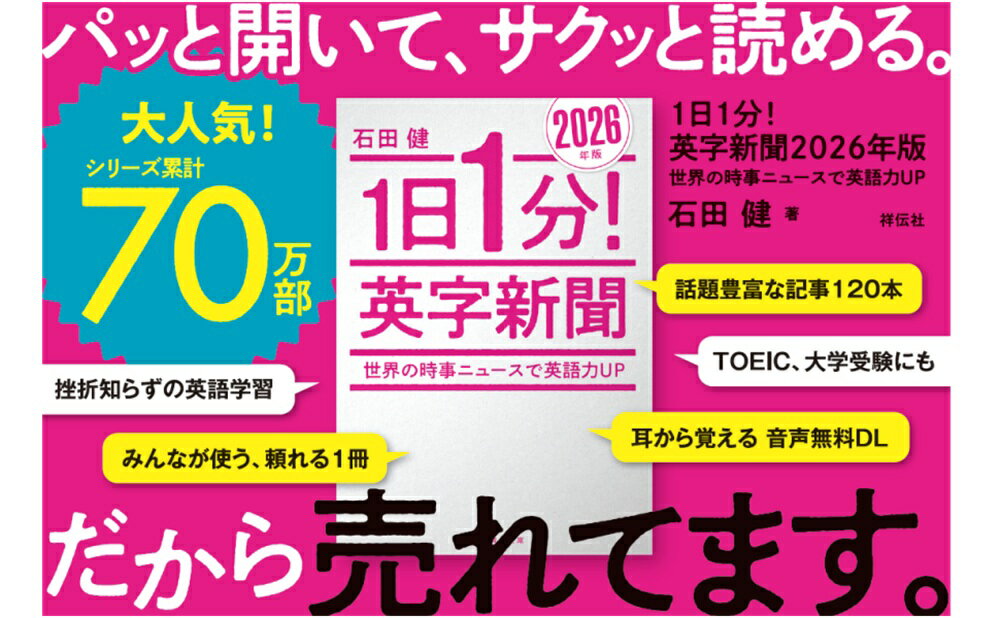 書籍名 : 1日1分!英字新聞 2026年版ーー世界の時事ニュースで英語力UP (祥伝社黄金文庫) [ 石田 健 ]