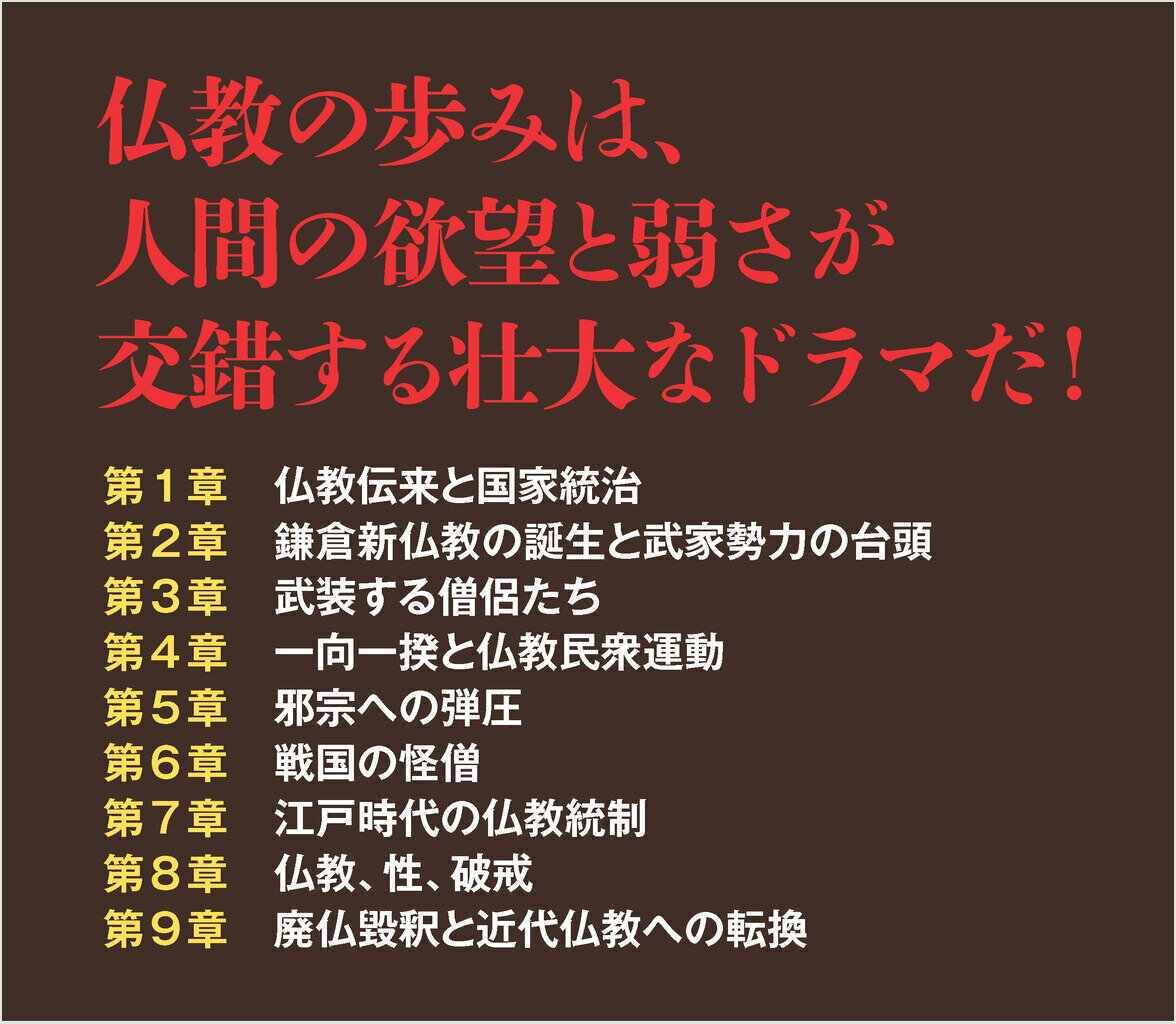 SB新書 鵜飼秀徳 SBクリエイティブヨクボウノブッキョウシ ウカイヒデノリ 発行年月:2025年12月07日 予約締切日:2025年12月06日 ページ数:288p サイズ:新書 ISBN:9784815626488 鵜飼秀徳(ウカイヒデノリ) 1974年、京都・嵯峨の正覚寺に生まれる。成城大学文芸学部卒業。報知新聞記者を経て、日経BP社に移籍。日経ビジネス誌記者などを歴任し、2018年に独立。2021年、正覚寺住職(三十三世)。主に「宗教と社会」をテーマに取材、執筆、講演などを続ける。大正大学招聘教授、東京農業大学・佛教大学非常勤講師。一般社団法人良いお寺研究会代表理事。公益財団法人日本宗教連盟・公益財団法人全日本仏教会委員(学識経験者)(本データはこの書籍が刊行された当時に掲載されていたものです) 第1章 仏教伝来と国家統治/第2章 鎌倉新仏教の誕生と武家勢力の台頭/第3章 武装する僧侶たち/第4章 一向一揆と仏教民衆運動/第5章 「邪宗」への弾圧/第6章 戦国の怪僧/第7章 江戸時代の仏教統制/第8章 仏教、性、破戒/第9章 廃仏毀釈と近代仏教への転換 仏教のタブーに斬りこみ、知られざる日本史の裏事情を暴く!日本の僧侶が、厳しい修行と清貧の生活の中で真摯に祈りを捧げ、人々を救いに導いてきたことは決して間違いではない。しかし、欲深く、暴力的で、堕落した歴史を歩んできたことも否定できない事実である。本書では、日本において仏教が辿ってきた闇の歴史に光を当て、私たちと宗教との関係性を問い直す。 本 人文・思想・社会 宗教・倫理 仏教 人文・思想・社会 歴史 日本史 人文・思想・社会 ノンフィクション ノンフィクション(日本) 新書 その他