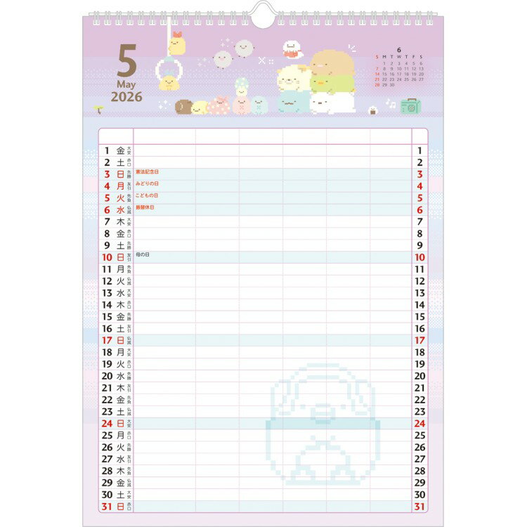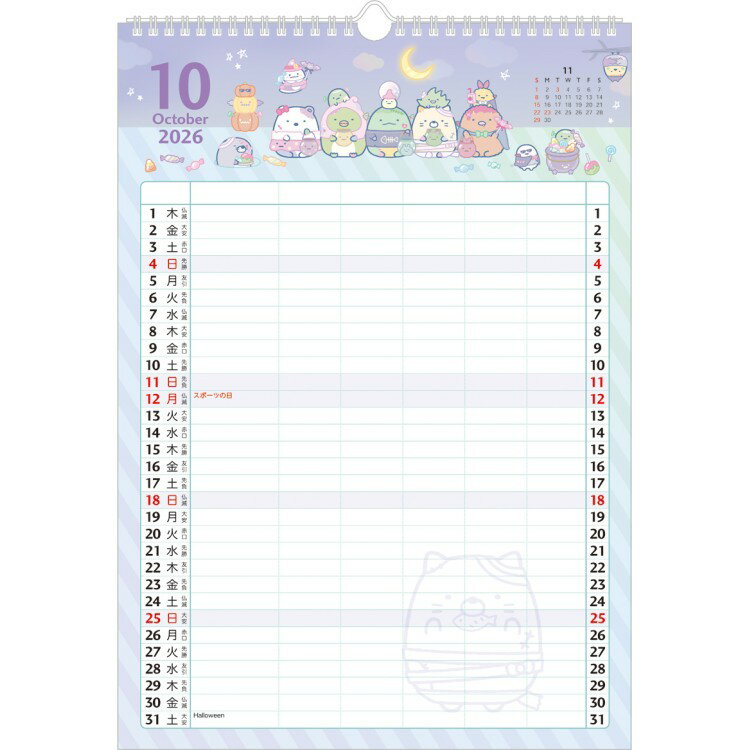 書籍名 : すみっコぐらし 2026年カレンダー リング壁掛け家族 六曜入り ウォールカレンダー ファミリーカレンダー 推し活 シール付 馬柄 干支