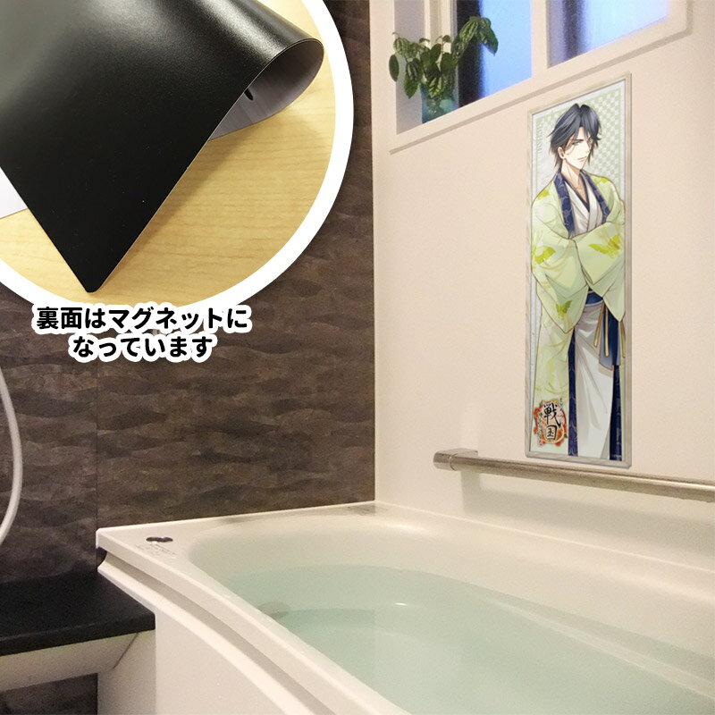 ■お届け方法 ◆おふろポスター スリムタイプは3個までゆうパケットでお送りできます。 ■ご注意 ●本製品はマグネットを使用しています。ご使用になる壁面に磁石がつくかどうか、あらかじめご確認ください。 ●本製品の裏面(マグネット面)が壁面に密着するように貼ってください。●本製品に折り目やふちの波打っている部分がある場合、平らな面などに数日貼っていただくと直ります。 ●長期間のご使用など、使用環境により本製品と壁の間や周囲にカビが発生する場合があります。浴室の清掃時などに外して水分を拭き取ってください。 ●保管中の製品の反りやシワがご使用時に戻りにくい場合は、浴槽やシャワーのお湯などにつけて温めてからご使用ください。製品がやわらかくなり壁面などに貼りやすくなります。 ●本製品の水分をタオル等で拭き取る際には強くこすらないでください。 ●浴室の清掃時等に、本製品に洗剤等がかからないようにしてください。 ●浴室乾燥機使用時は本製品を取り外してください。 ●本製品を火気などの熱源の近くに置かないでください。 ●お使いのモニターにより、写真と実物とでは、多少、色合いが異なって見える場合がありますのでご了承下さい。\ 【イケメン戦国】おふろポスターにスリムタイプが登場!! / お風呂で使えるマグネット製のポスターのスリムタイプです。好きなキャラクターを眺めながらゆったりバスタイムを過ごせます。 お風呂以外にも、玄関ドアや冷蔵庫、ホワイトボードなど、マグネットがつく場所に貼って使えます。 大人気女性向け恋愛ゲーム【イケメン戦国◆時をかける恋】に登場する、完璧主義×盲愛の帰蝶がデザインされています。 ■商品サイズ:約200×570mm ※本製品はマグネットを使用しています。ご使用になる壁面に磁石がつくかどうか、あらかじめご確認ください。 ※写真はイメージです ■商品仕様 0.3mmの薄いマグネットシートでできたポスターです。 磁石の付く壁面にぴったりと貼りつけることができます。 サイズ 約200×570mm 厚み 約0.3mm 重さ 約110g 素材 PVC・マグネット ■マグネットシートの特徴