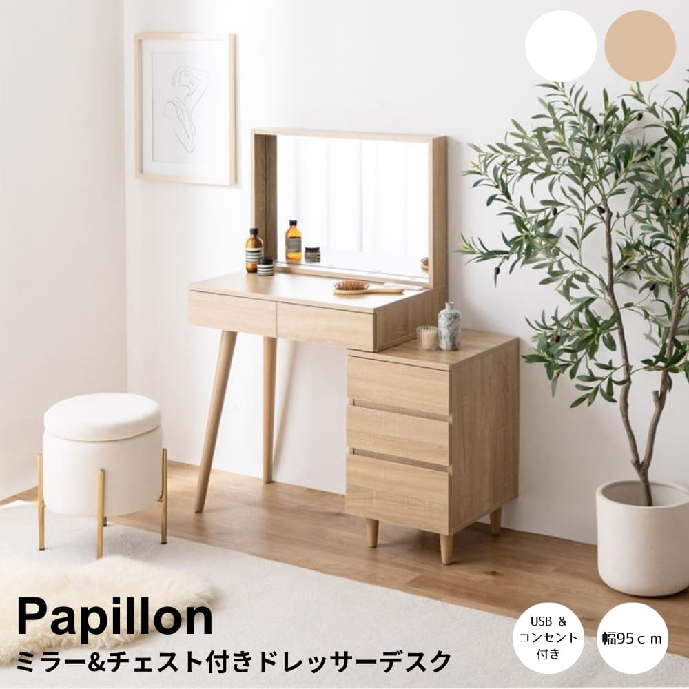 ミラー&チェスト付きドレッサーデスク ドレッサー ドレッサーデスク 鏡台 メイクデスク 化粧台 収納付きドレッサー 北欧