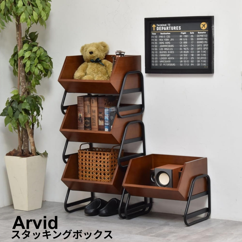 【楽天 スーパーSALE★ポイント10倍】 アンティーク スタッキングボックス 収納ボックス スタッキング収納 木製収納 アイアン家具 ヴィンテージ家具 インダストリアルインテリア ローシェルフ オープンラック 新聞ストッカー 雑誌収納 リビング収納 玄